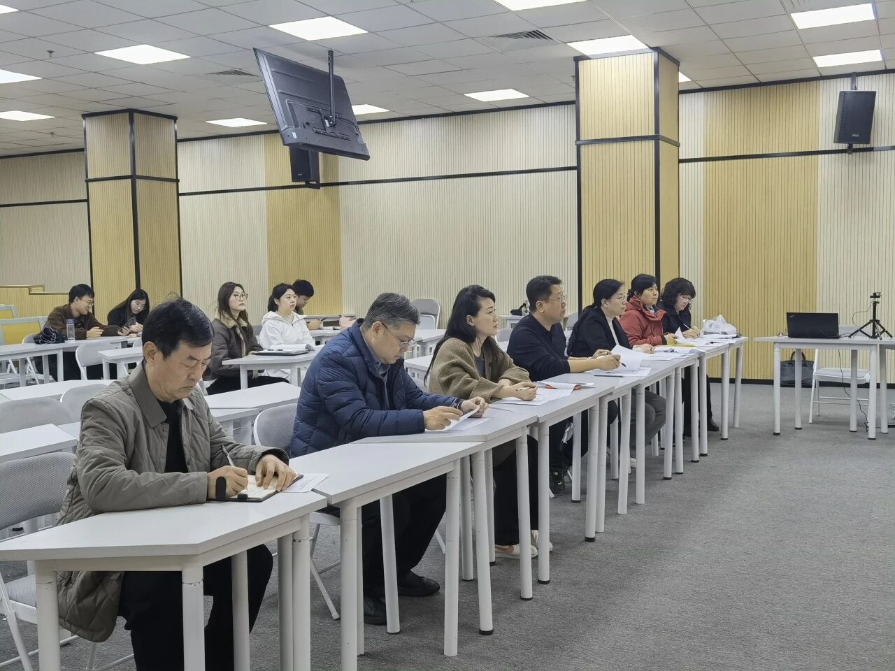 學(xué)院高度重視本次評比活動,王飛、李建輝副院長到?jīng)Q賽現(xiàn)場觀摩指導(dǎo),為參賽教師加油鼓勁;特邀五位行業(yè)專家組成評審團,進行專業(yè)、精準的評審工作。本次決賽創(chuàng)新性設(shè)置“現(xiàn)場教學(xué)”與“答辯環(huán)節(jié)”兩大核心模塊,從教學(xué)實踐到育人思考,全方位、立體化考察教師的課程思政教學(xué)能力,各環(huán)節(jié)亮點頻現(xiàn),精彩迭出。