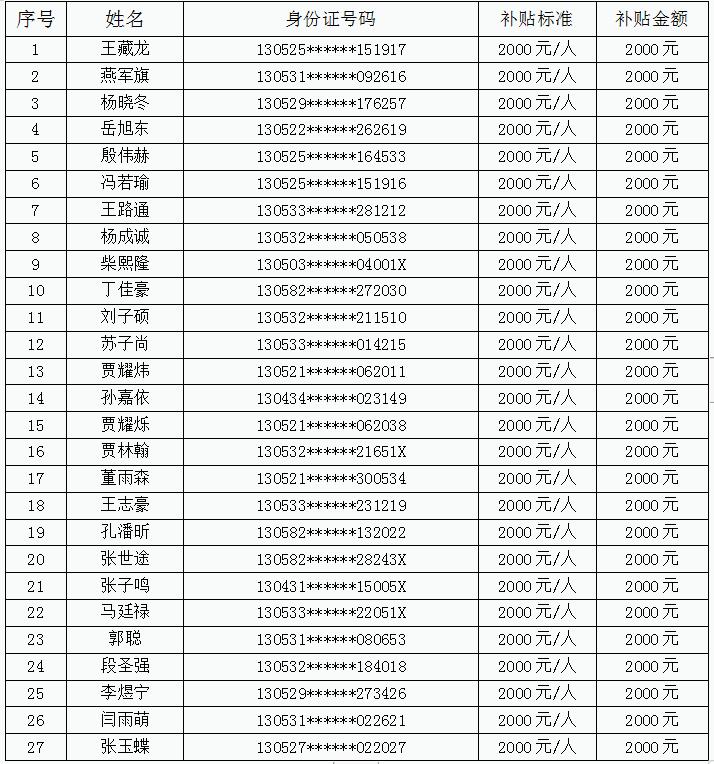 按照《河北省就業(yè)創(chuàng)業(yè)資金管理辦法》(冀財(cái)規(guī)〔2018〕21號(hào))規(guī)定,現(xiàn)將我校申領(lǐng)求職補(bǔ)貼審核情況予以公示,公示期3個(gè)工作日。如在公示期間對(duì)公示內(nèi)容有異議,請(qǐng)以電話的形式向學(xué)院招生就業(yè)處反映。