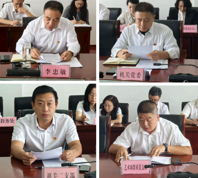 機關第二黨支部書記王華強、藝術幼教系黨支部書記袁旭先后代表基層黨支部作交流發(fā)言。兩人結合支部工作實際,分別從理論學習組織、警示教育開展、師生訴求響應、整改任務推進等方面,分享了支部在學習教育中的具體做法與實踐經驗,為全院各支部相互借鑒、深化作風建設提供了參考。